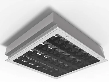 TIPO: Luminária de embutir alto rendimento com aletas parabólicas duplas fechada com difusor.