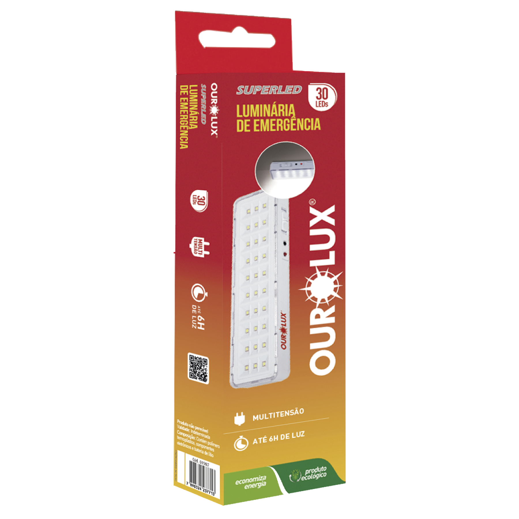 A luminária de emergência com pilhas recarregáveis proporciona maior fluxo luminoso, com metade do consumo energético em relação aos modelos anteriores.