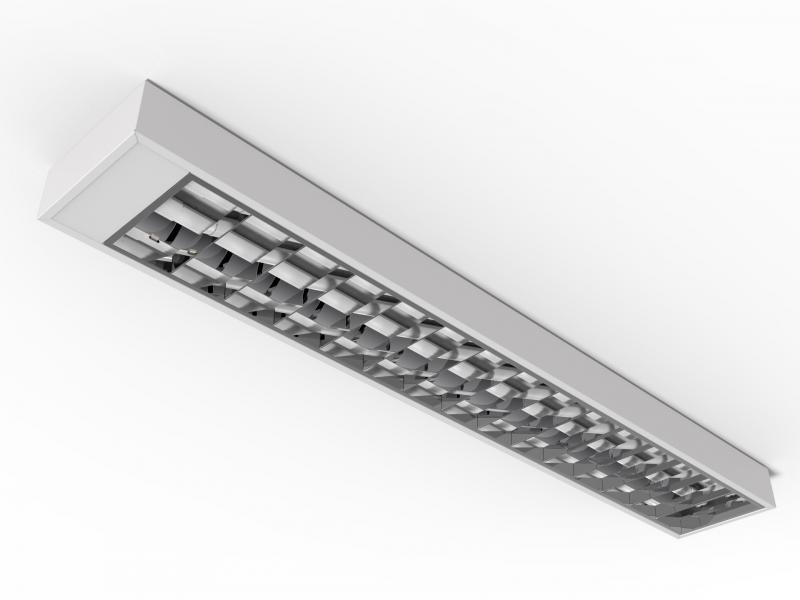 TIPO: Luminária de sobrepor alto rendimento com aletas parabólicas duplas, abertura 200 milímetros.