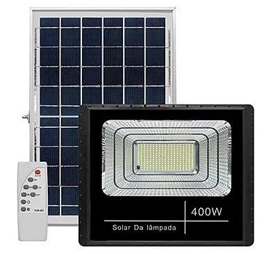 Refletor led solar 400w com controle remoto, produto inovador de alta resistência e design moderno, é a solução independente com ótima iluminação, dispensando toda e qualquer infraestrutura elétrica.