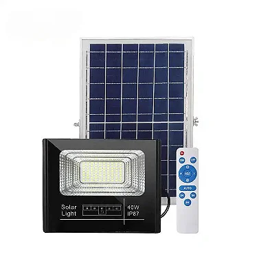 Refletor led solar 40w com controle remoto, produto inovador de alta resistência e design moderno, é a solução independente com ótima iluminação, dispensando toda e qualquer infraestrutura elétrica.